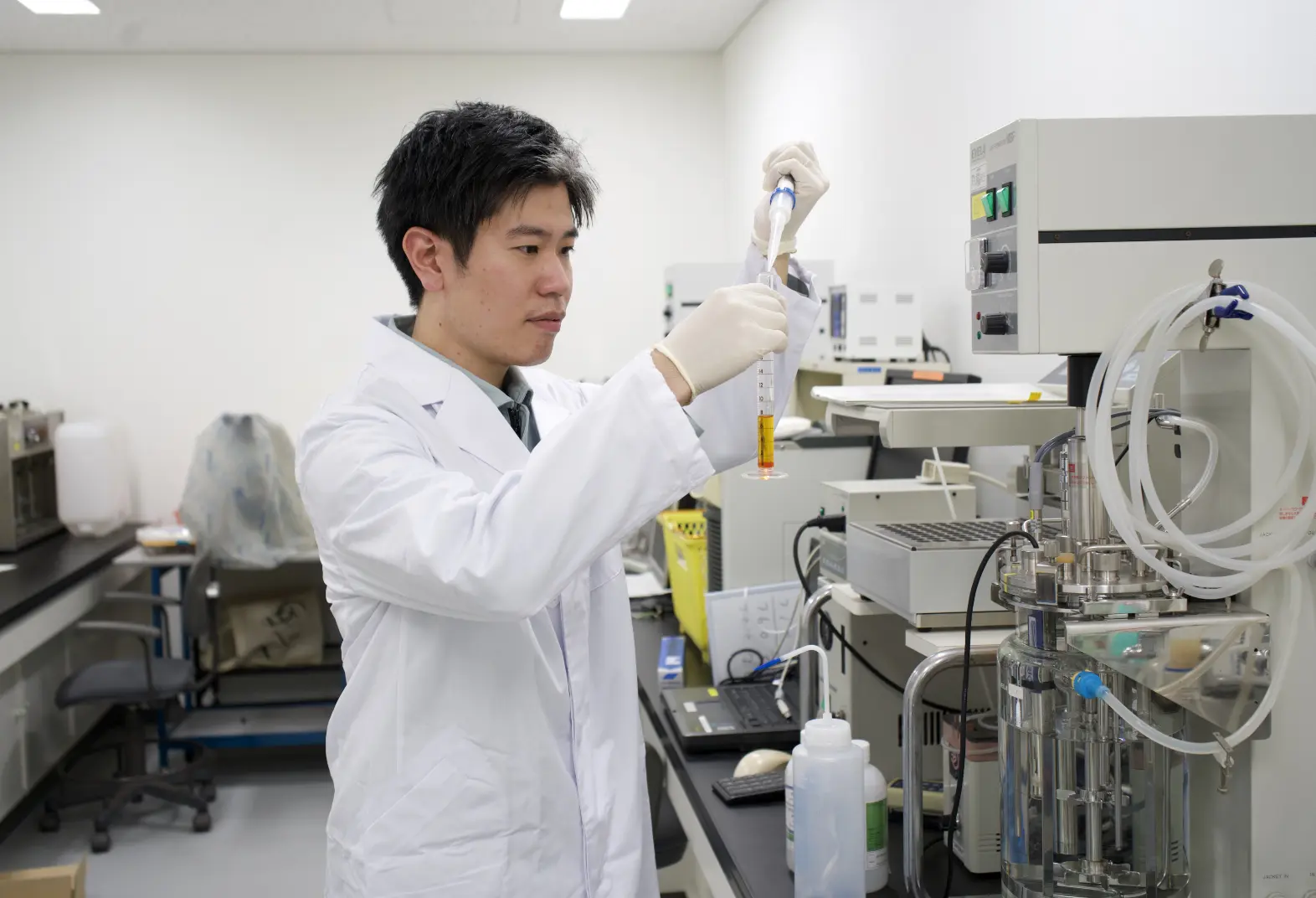 処理途中の水や浄化後の水を採取し、見た目では判断でき